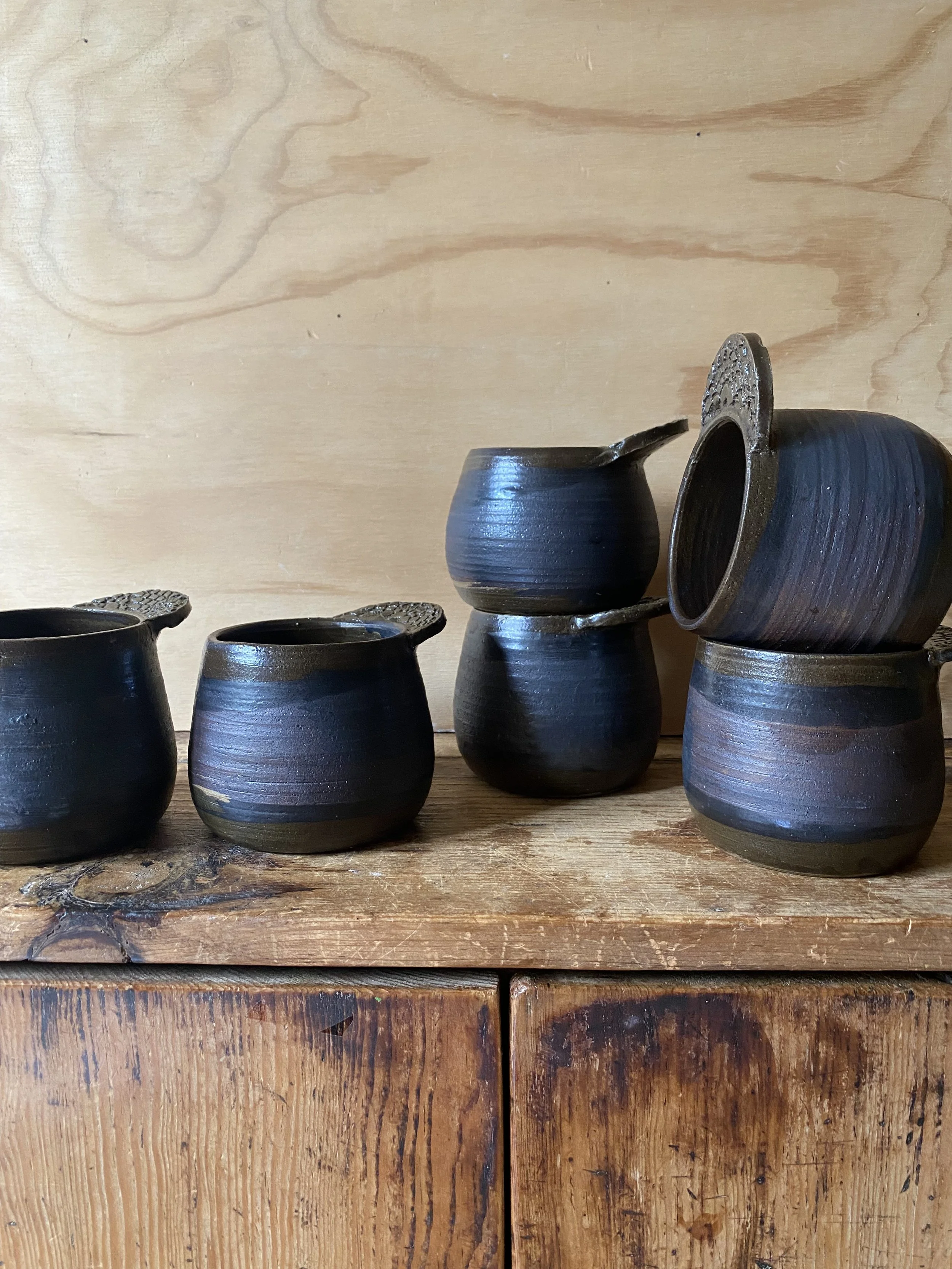 Katrina hand throws these pottery vessels on the potters wheel using Mid Fire clays. Two types of clay are wedged together loosely, which creates the marbling effect with the rotation of the pottery wheel. They are finished with a soft natural glaze that enhances the beauty of the marble effect.